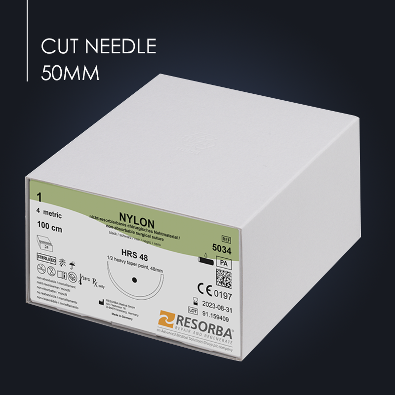 NYLON 1 USP 50MM REV. CUT NEEDLE 100CM LENGTH